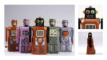Najbolji prijatelji svih dečaka! Ova sekcija sadrži neke od najomiljenijih igračaka klinaca svih generacija. Roboti igračke su se tokom godina razvijale i evoluirale od klasičnih limenih igračaka do vrlo sofisticiranih i pametnih igračaka. Veruje se da je prvi limeni robot igračaka koji je napravljen bio robot Lilliput iz Japana. Smatralo se da kvadratni, žuti robot datira iz 1930-ih, ali stručnjaci sada veruju da je on prvi put napravljen u posleratnom okupiranom Japanu oko sredine 1940-ih. Sledeći robot koji je objavljen bio e Atomic Robot Man krajem 1940-ih. Uručen je kao promotivni poklon na Njujorškoj naučno-fantastičnoj konvenciji 1950.
